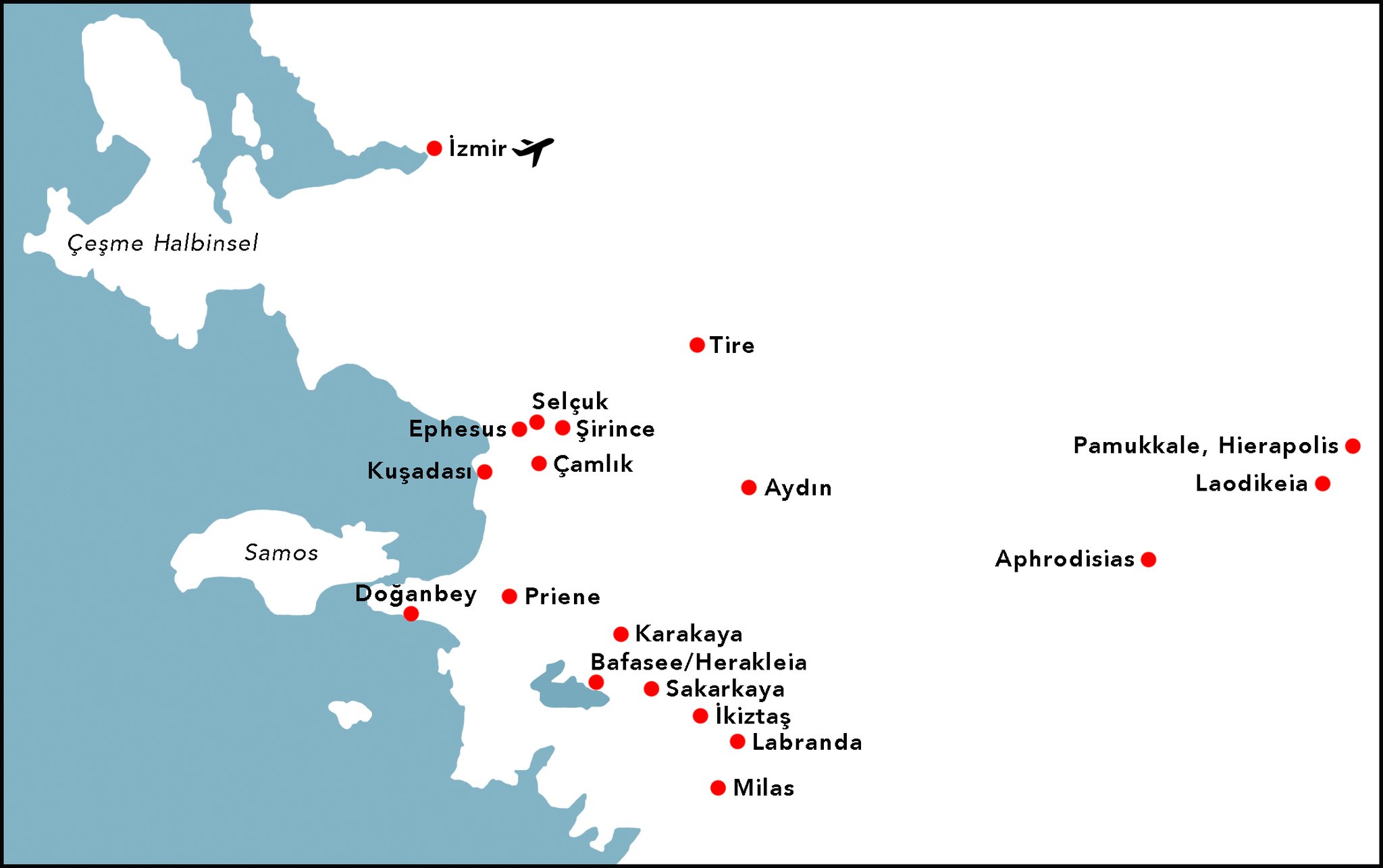 Nach der Ankunft in Izmir fuhren wir nach Kuşadası. Die ersten fünf Tage waren wir mit dem Tagesrucksack wandernd im Gebiet Bafasee und Latmosgebirge unterwegs. Der Bus folgte mit dem Gepäck.