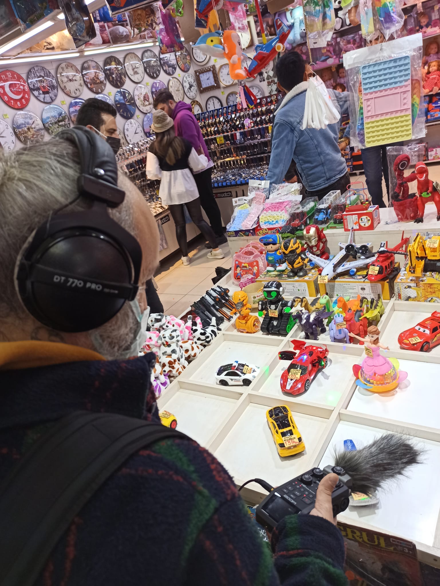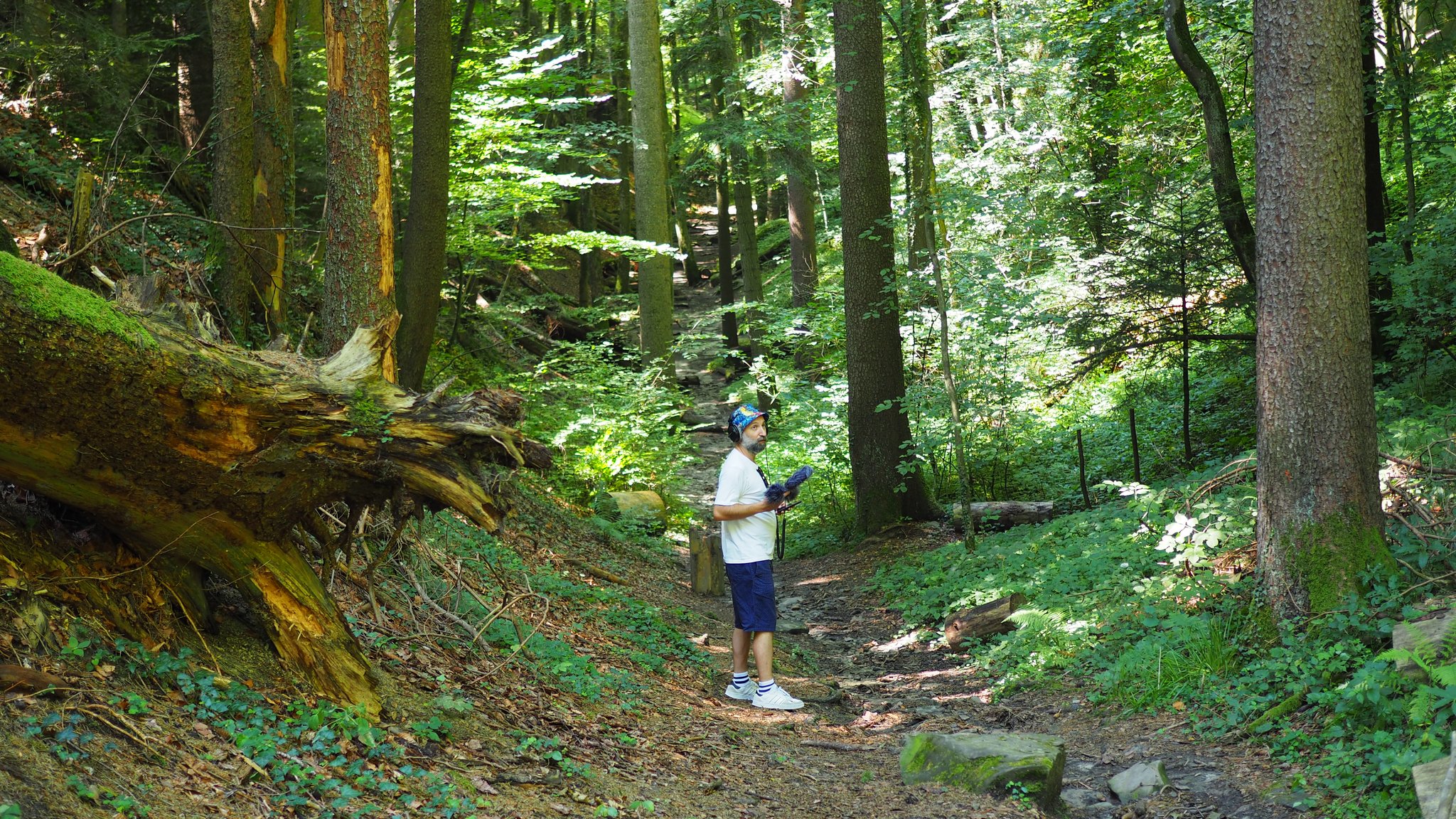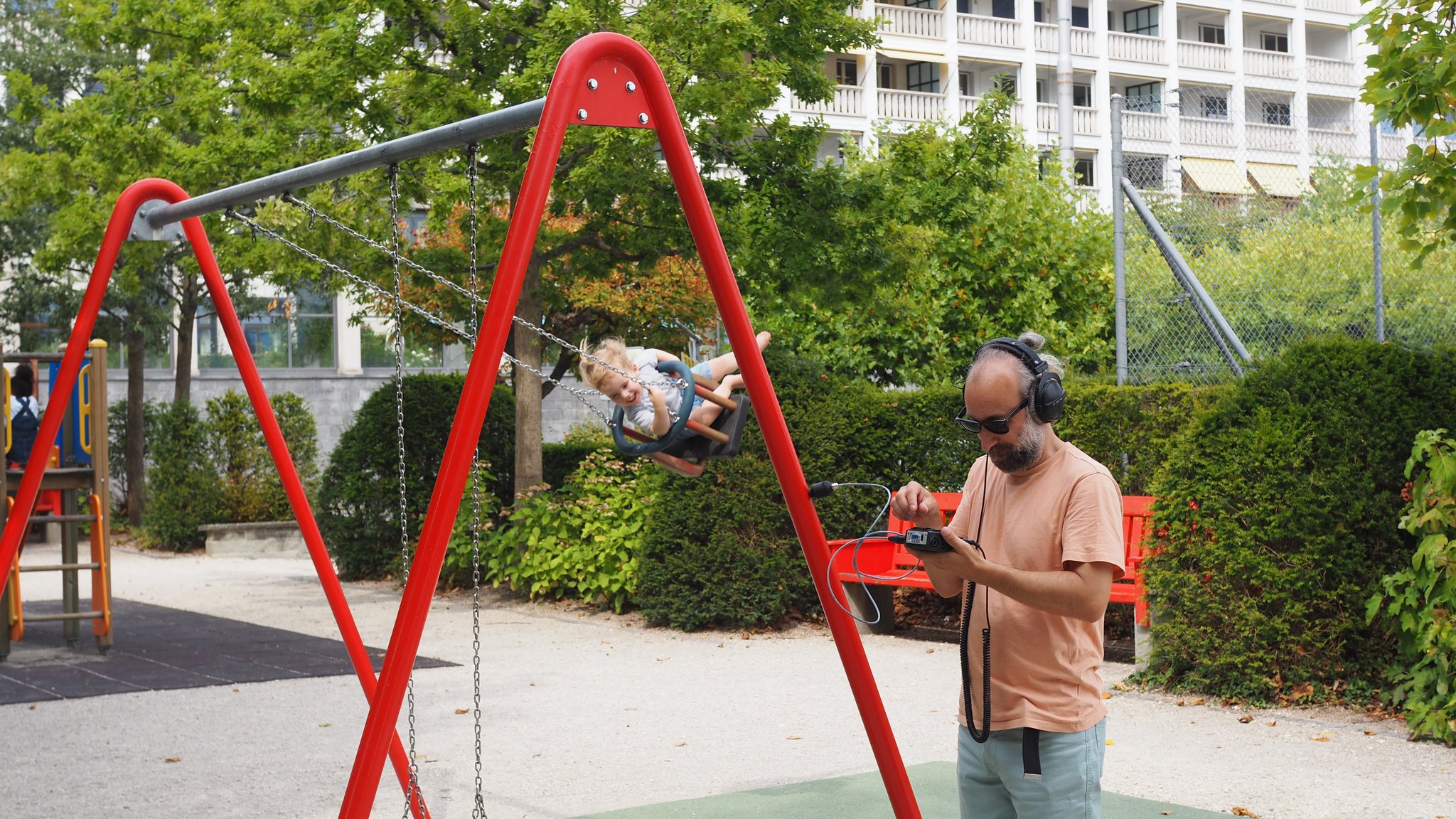 Bei einer unserer Tonaufnahmen besuchten wir einen Kinderspielplatz und wollten die Geräusche der Schaukeln, Rutschen und Kinderstimmen aufnehmen. Wir fragten eine Familie dort um Erlaubnis, ihre Geräusche aufnehmen zu dürfen und erzählten von unserer Arbeit, woraufhin sie sehr interessiert waren. Als wir ihren Klang aufnahmen, gaben wir ihnen die Kopfhörer und sie waren sehr überrascht von dem, was sie hörten. Sie haben sehr herzig reagiert.