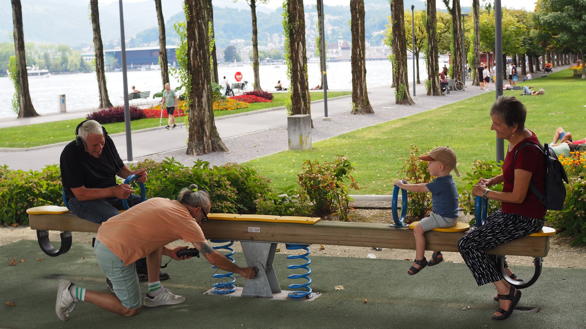Anmerkung: Cem und Onur kurven hier in Luzern mit zwei alten Damenfahrrädern herum, die Gabi Kopp ihnen besorgt hat.