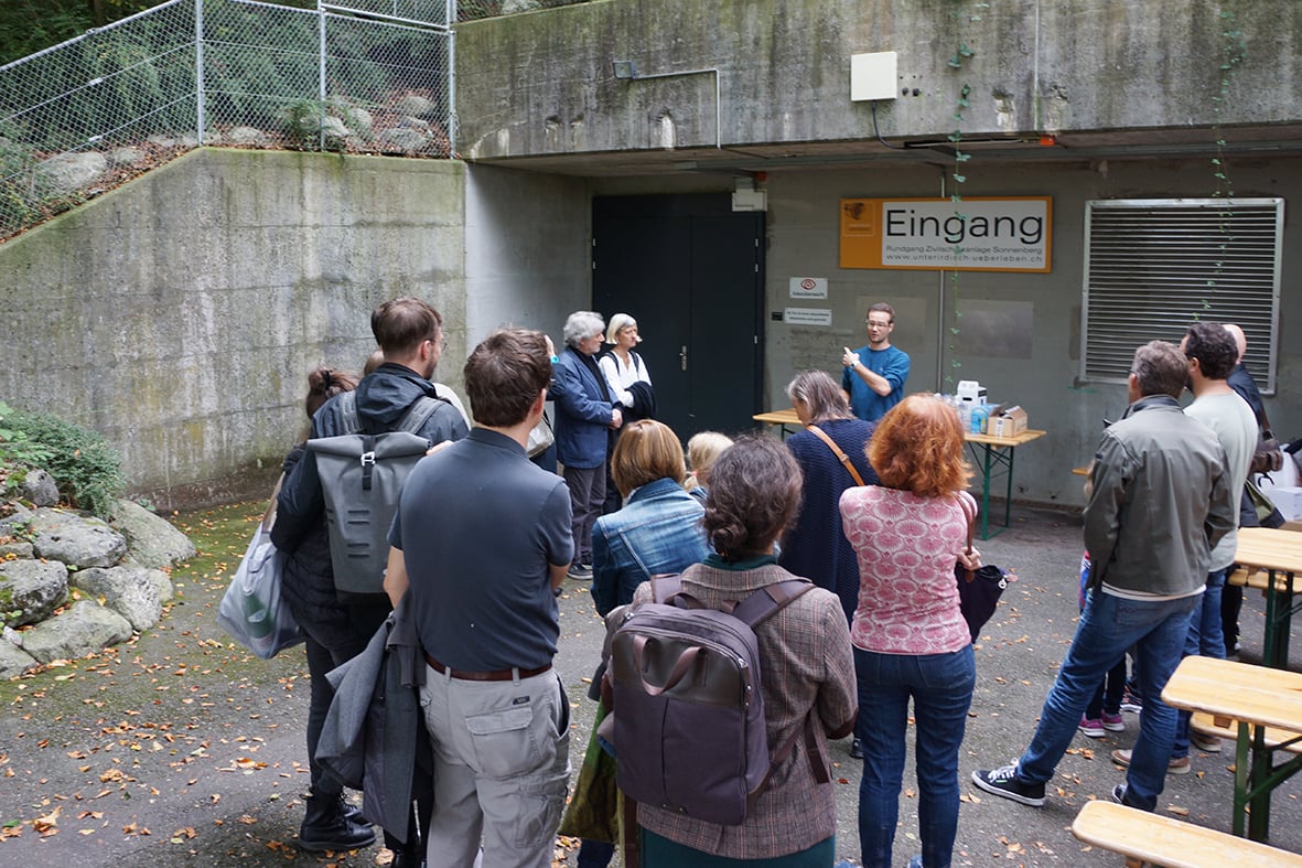 Nach einer Führung durch die Zivilschutzanlage Sonnenberg präsentierte unser Stipendiat Onur Atay seine spannenden Rechercheergebnisse über Schweizer Bunker und darauf aufbauend seine faszinierenden Ideen, wie diese Anlagen revitalisiert, genutzt und vernetzt werden können. Im Anschluss durften die Gäste ihr eigenes Bunkernetzwerk bauen und sich beim stilgerechten Apéro vor dem Bunker nach all diesen Eindrücken stärken.