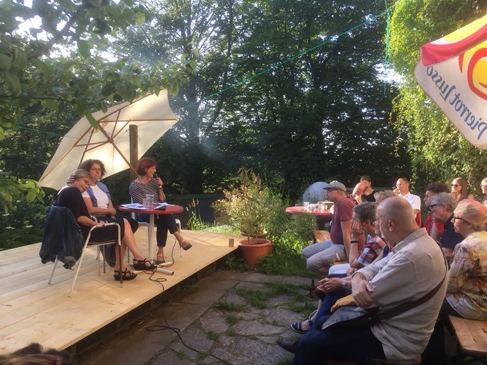 An einem wunderschönen und heissen Sommerabend las – im Anschluss an unsere Mitgliederversammlung – Angelika Overath aus ihrem neuen Roman «Ein Winter in Istanbul» und stellet sich den Fragen von Regula Jeger. Danach verwöhnte uns Franciska Lazri mit ihren live produzierten und wunderbaren Börek im verwunschenen Garten der Industriestrasse 9.