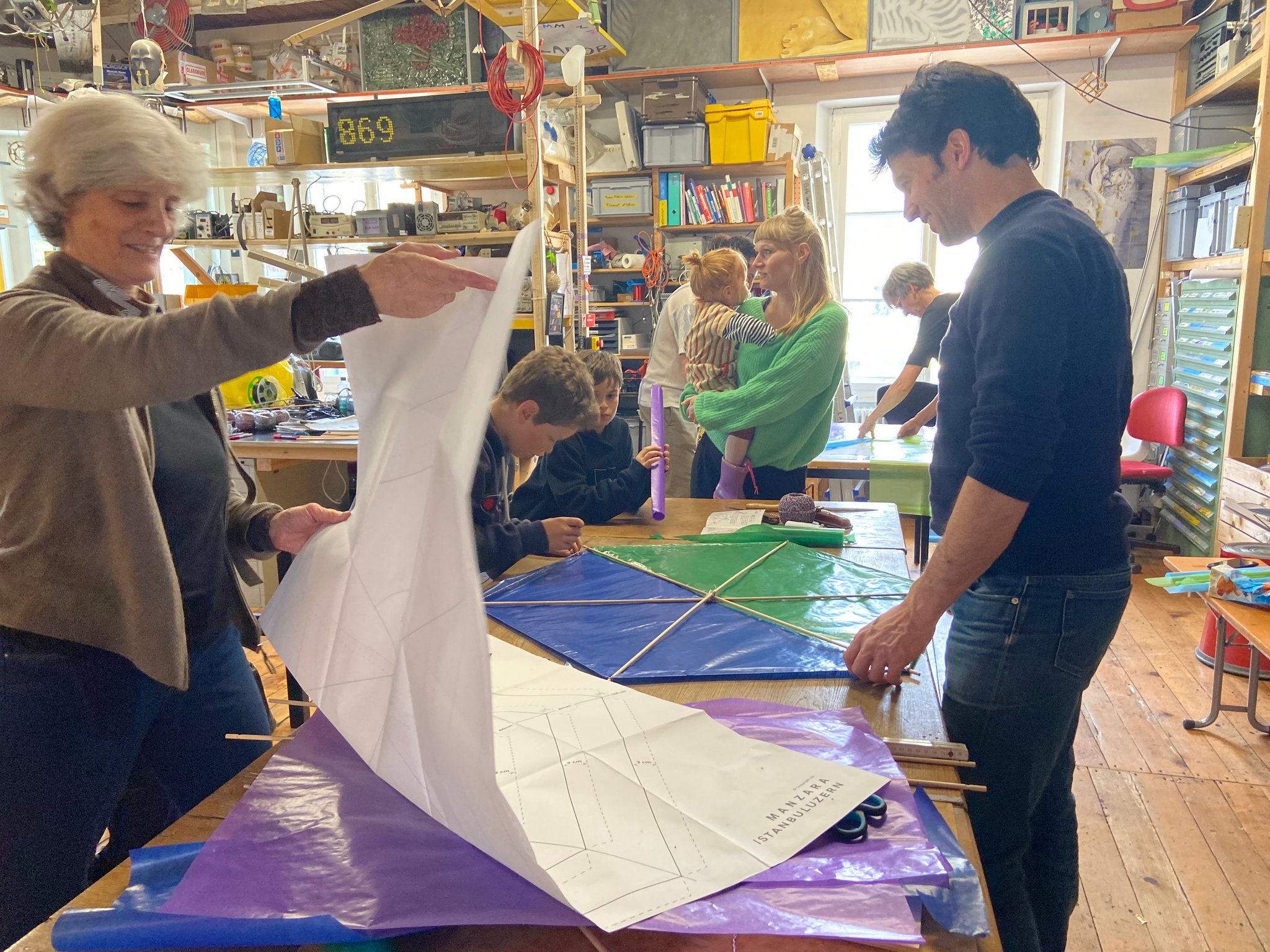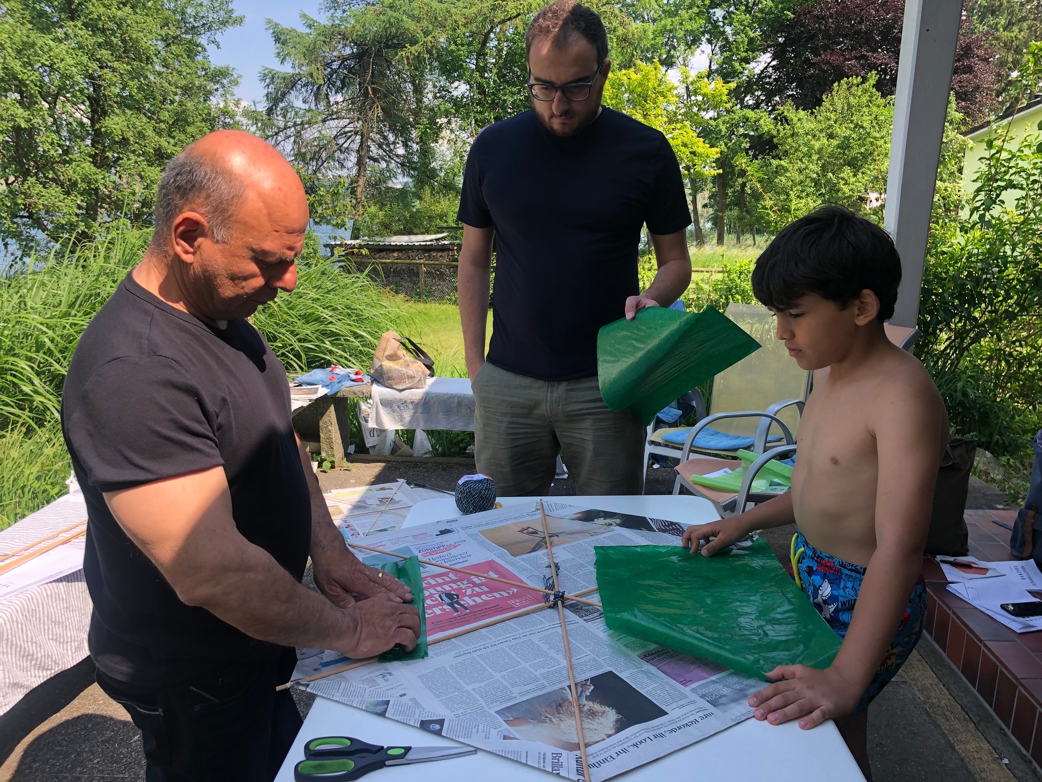 Unter fachkundiger Anleitung von Gabi Kopp und unterstützt von Kader Söylen und Franziska Meienberg haben Ende März acht Kursteilnehmende – davon vier Kinder und Jugendliche – siebeneinhalb Drachen gebaut. Die Atmosphäre war fröhlich und gschaffig in der wunderbaren Werkstatt des Labor Luzern in Kriens. Wir danken dem Labor herzlich für das Gastrecht!