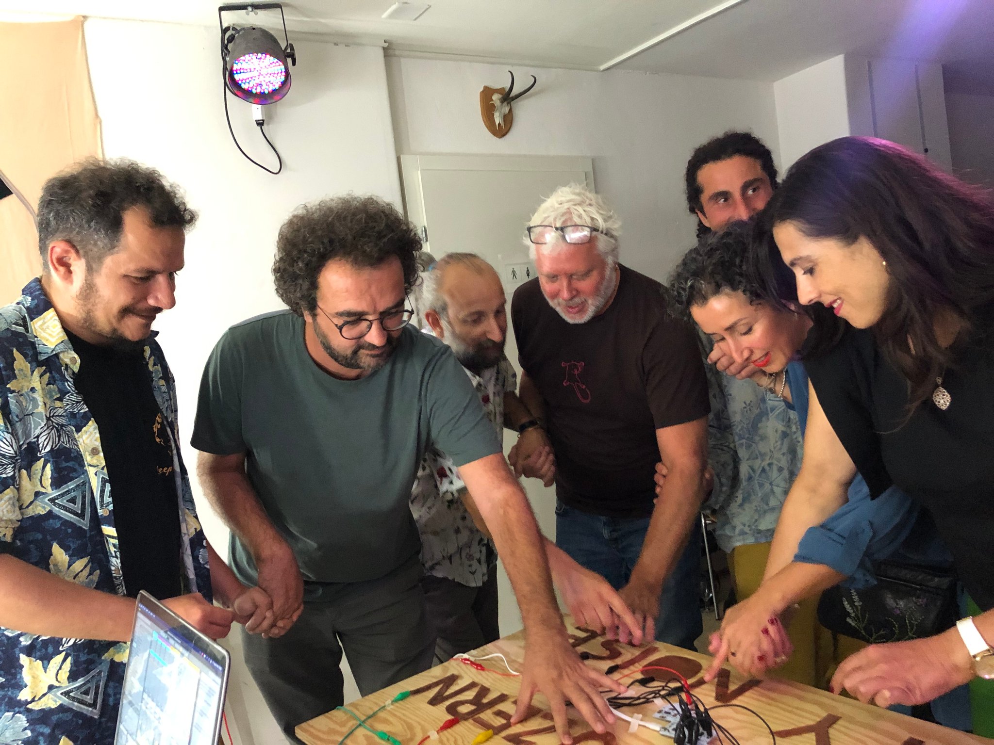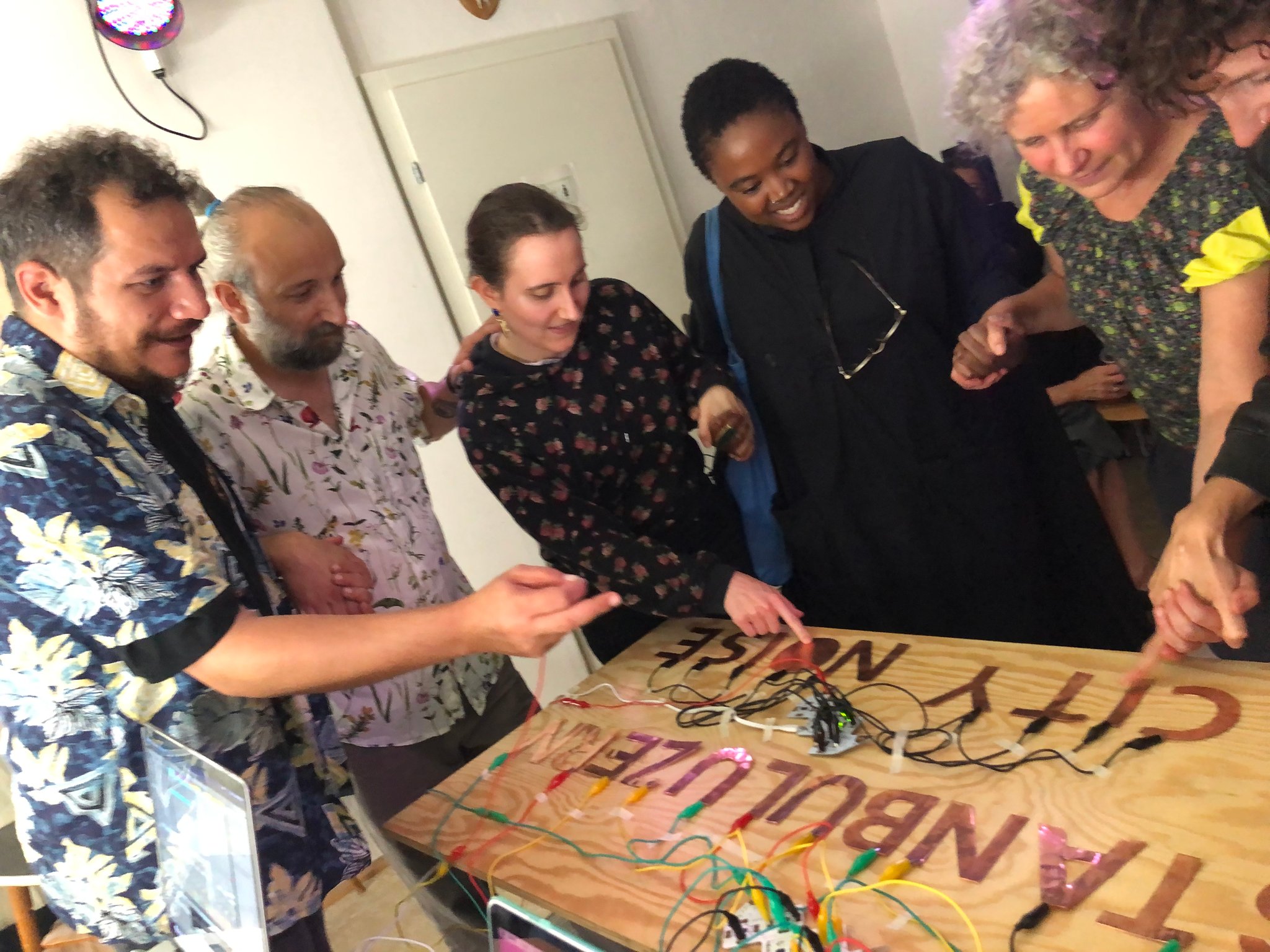 Die beiden Musiker Cem Gezginti und Onur Dağdeviren haben ihr Projekt, das sie in den drei Wochen hier in Luzern entwickelt haben, in drei Teilen präsentiert: Erst eine Komposition aus unbearbeitetem Tonmaterial aus Luzern und Istanbul, anschliessend die bearbeitete Komposition CITY NOISE und schliesslich eine interaktive Installation, die die Besucher:innen sichtlich genossen haben, wie die Bilder und das Video zeigen. Ein Abend ganz im Sinne unserer Idee: «bring us together, bring us together, bring us together …»