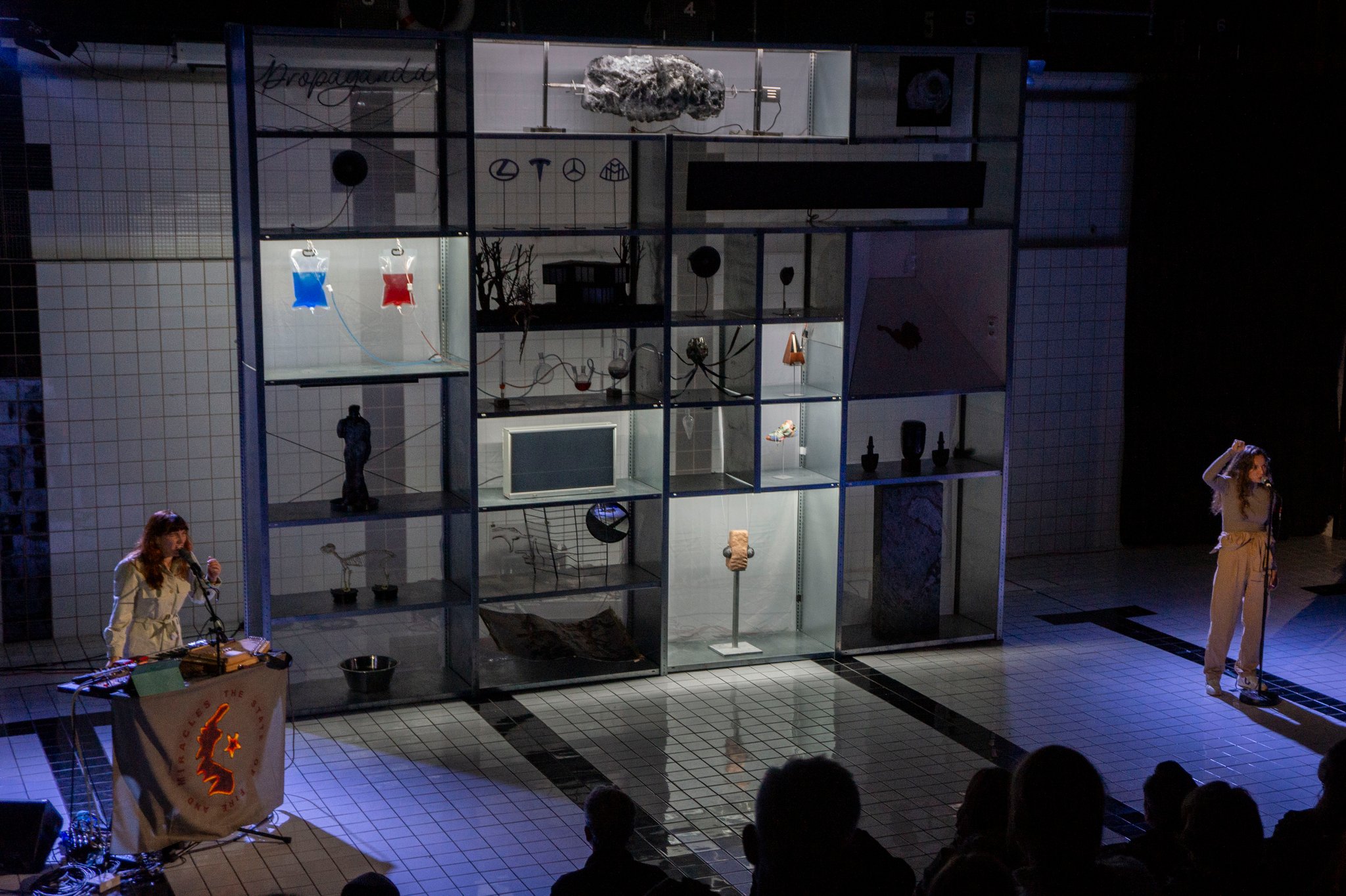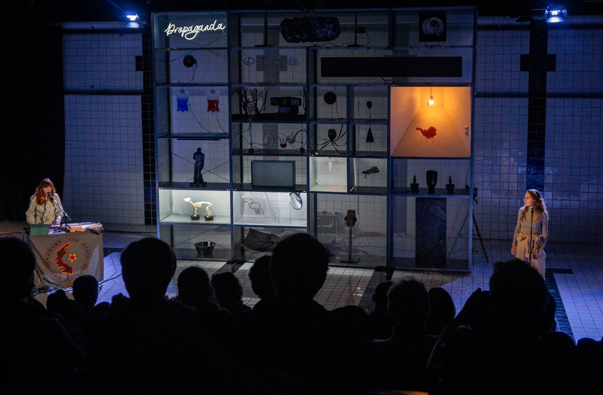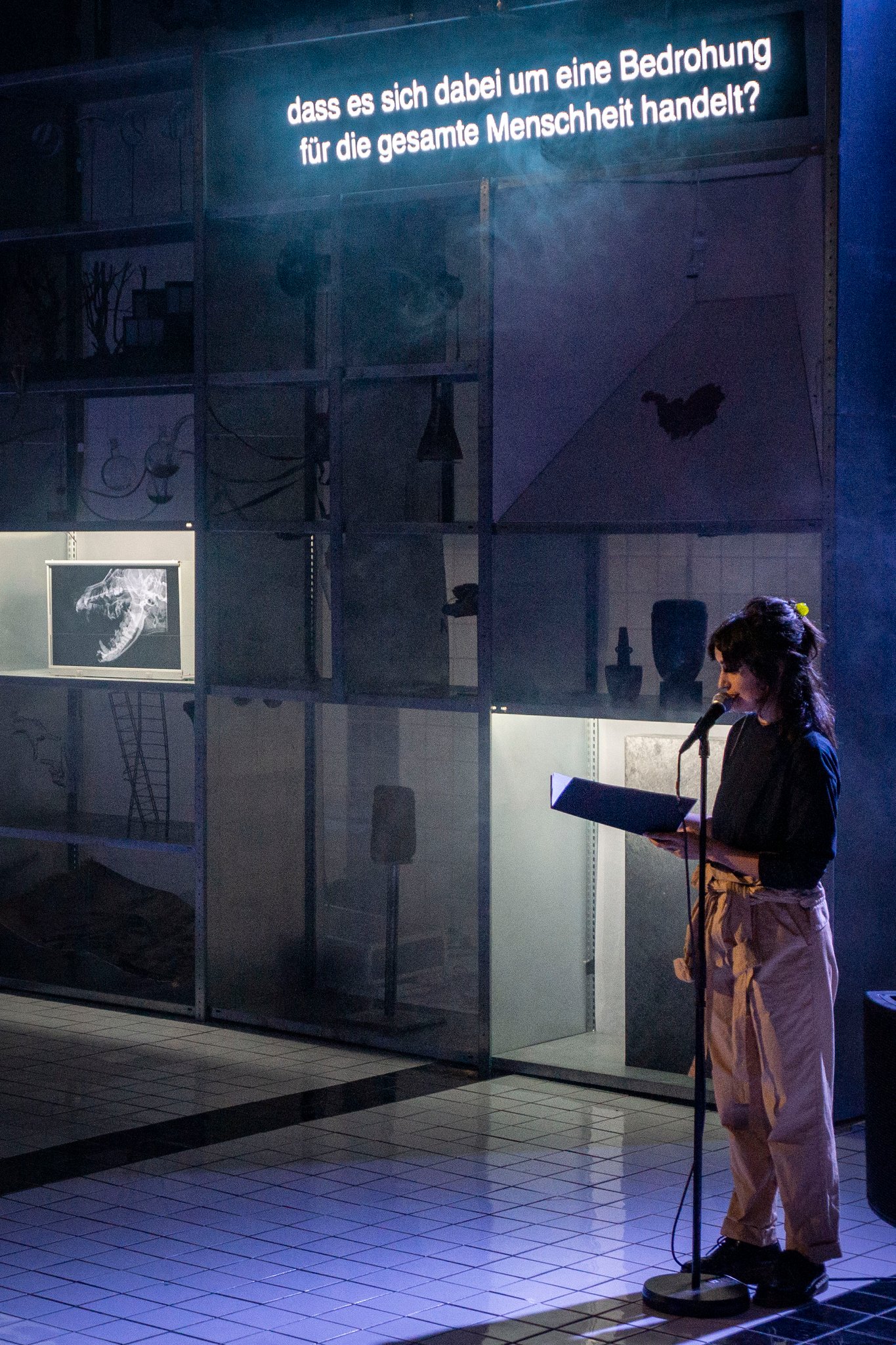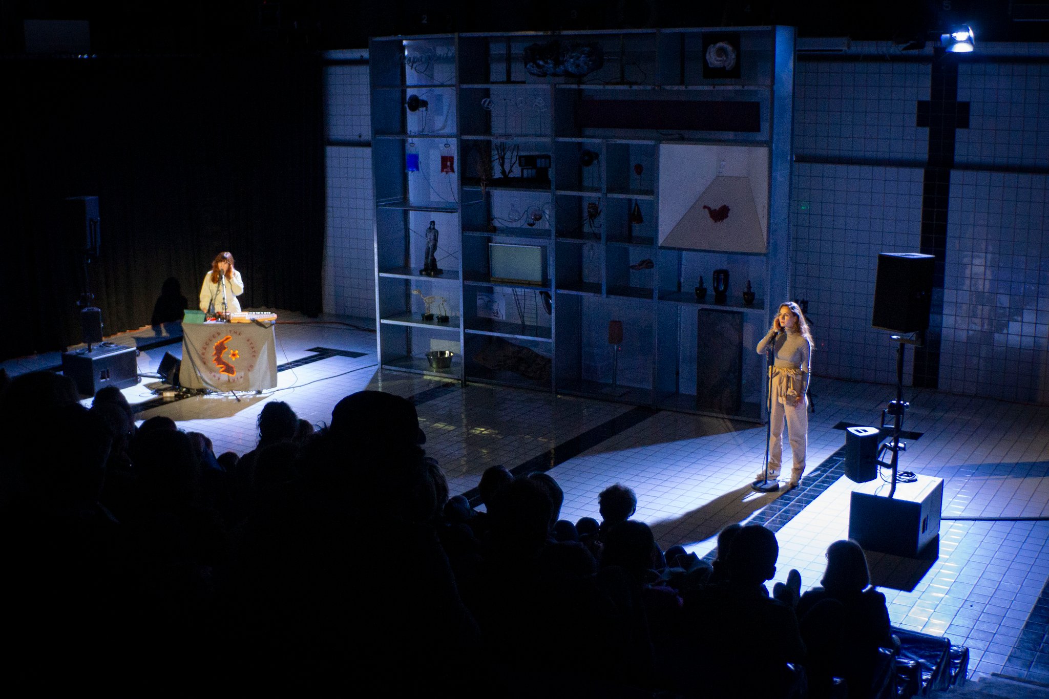 «Boji in the State of Fire and Miracles» ist eine universelle Fabel von Franz von Strolchen, alias Christian Winkler, die mit Christians und Sandra Küppers Stipendiumsaufenthalt im Herbst 2021 begann. Nachdem das Bühnenstück in Graz auf Begeisterung stiess und mit dem «Grazer Rüssel» – dem Theaterpreis der freien Szene – ausgezeichnet wurde, konnten wir das Bühnenwerk an zwei (individuellen) Abenden im Luzerner Neubad präsentieren. Am ersten Abend wurde das Stück von Albana Agaj auf Albanisch gesprochen, am zweiten Abend auf Türkisch von Selin Dettwiler.
