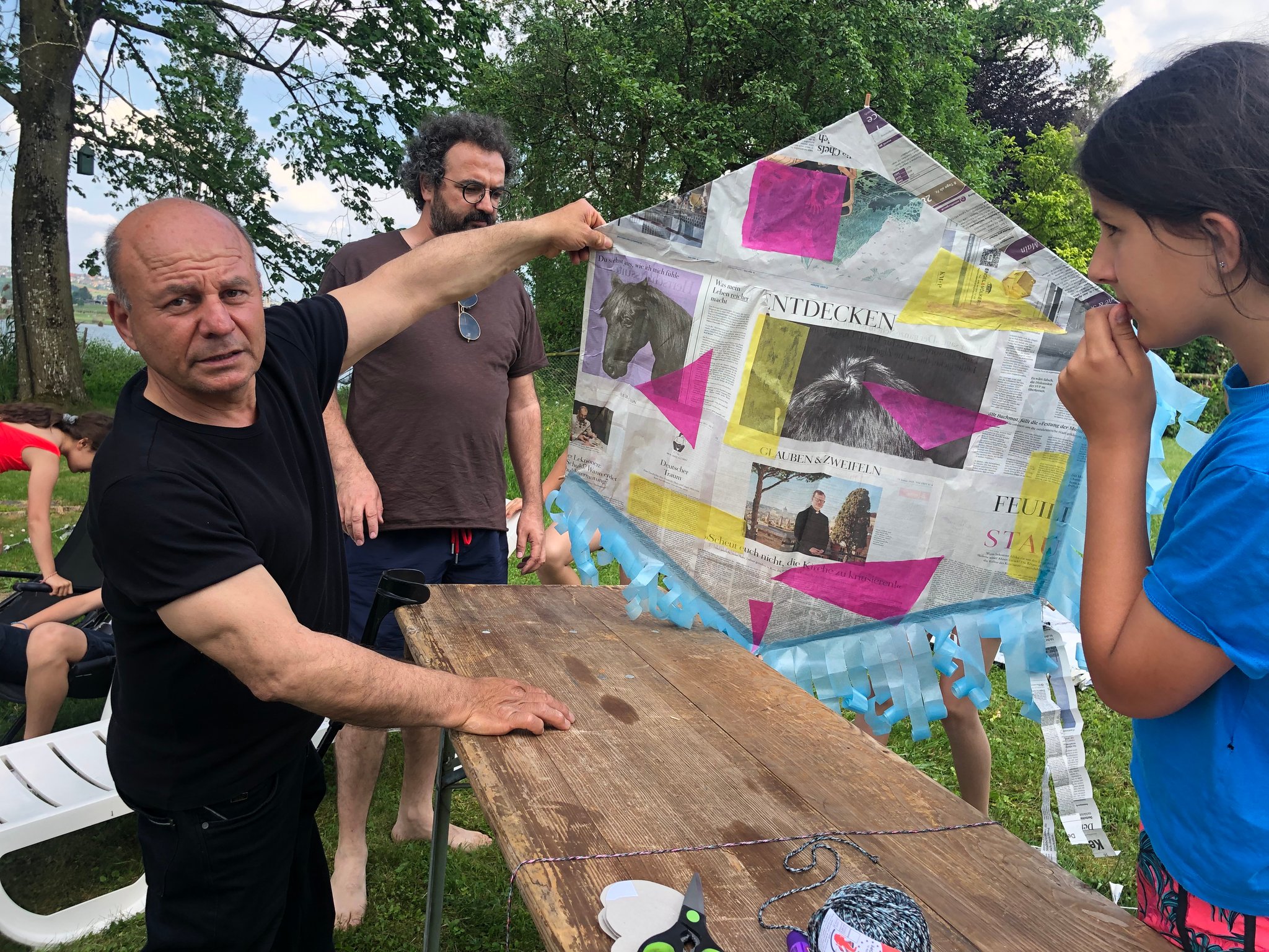 Während seines Istanbuluzern-Aufenthalts vor zwei Jahren, hat Cem Gezginti ein Stück zum Pilatus komponiert. Der Luzerner Autor Pablo Haller hat den Text – eine Neuinterpretation der Pilatussage – dazu geschrieben. Im Rahmen der Gruppenausstellung «Ab auf den Pilatus» in der Galerie Kriens kam das Stück zur Uraufführung! Ebenfalls boten wir einen Drachenbauworkshop an und Cem hat zusammen mit Gabi Kopp einen Drachenbaukurs für «Kriens intergriert» gegeben. Ein grossartiger Anlass, eine sehr gefreute Kooperation mit der Galerie Kriens und eine wunderbares Wiedersehen mit Cem war das. Herzlichen Dank an Emmanuel Ammon für die tollen Bilder.