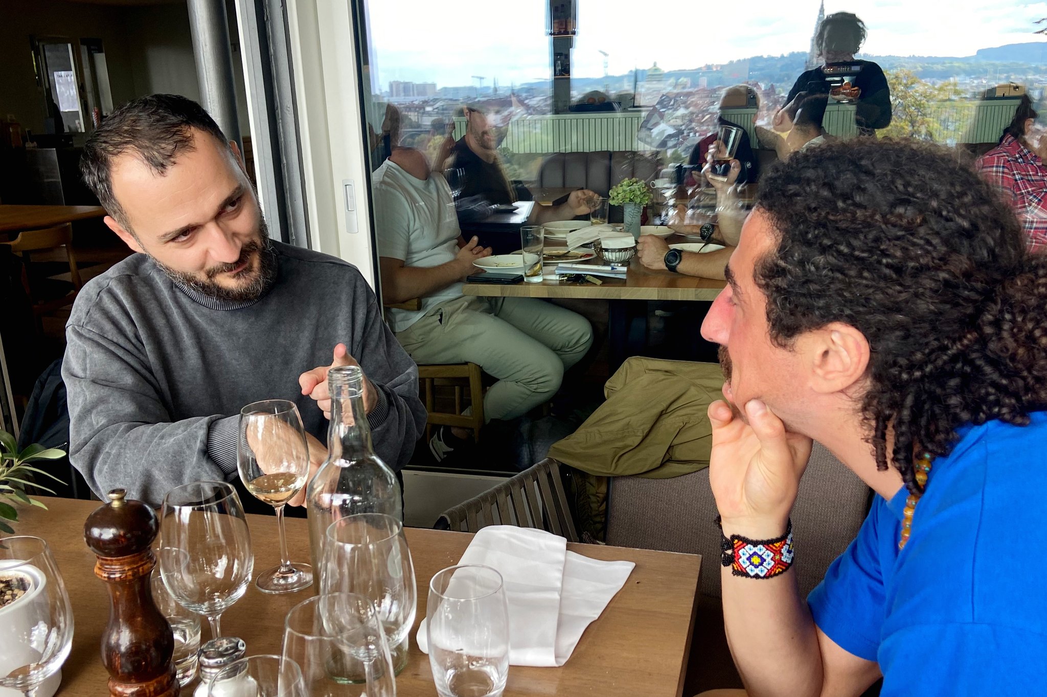 Anlässlich der Ausstellung «European shelters – from Ukraine to Switzerland» im Kornhausforum Bern kam es zu einem wunderbaren und sehr herzlichen Wiedersehen mit Onur Atay – unserem ersten Stipendiaten von Istanbul 2018 – in der Schweiz. Genau fünf Jahre nach seinem Rechercheprojekt «Future Shelters» – entstanden während seines Aufenthalts in Luzern – konnte dieses nun dank der Einladung des Kornhausforums Bern einer breiten Öffentlichkeit zugänglich gemacht werden und ist aktueller denn je. Der Kurator Nicolas Kerksieck hat unseine exklusive und spannende Führung geboten. Onurs Freundinnen und Freunde aus Luzern, Bern und Basel genossen die gemeinsame Zeit und wir freuen uns über die freundschaftliche Verbundenheit Onurs mit Istanbuluzern.